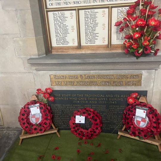 Listed on the Memorial stone are all the Provincial staff (whether they worked in the United Kingdom or Overseas), including Miss Laycock - a civilian staff member killed in an air raid on Nottingham. Also on display is the Book of Remembrance, which contains one page for every staff Member who lost their lives (see the Tribute page for further details).